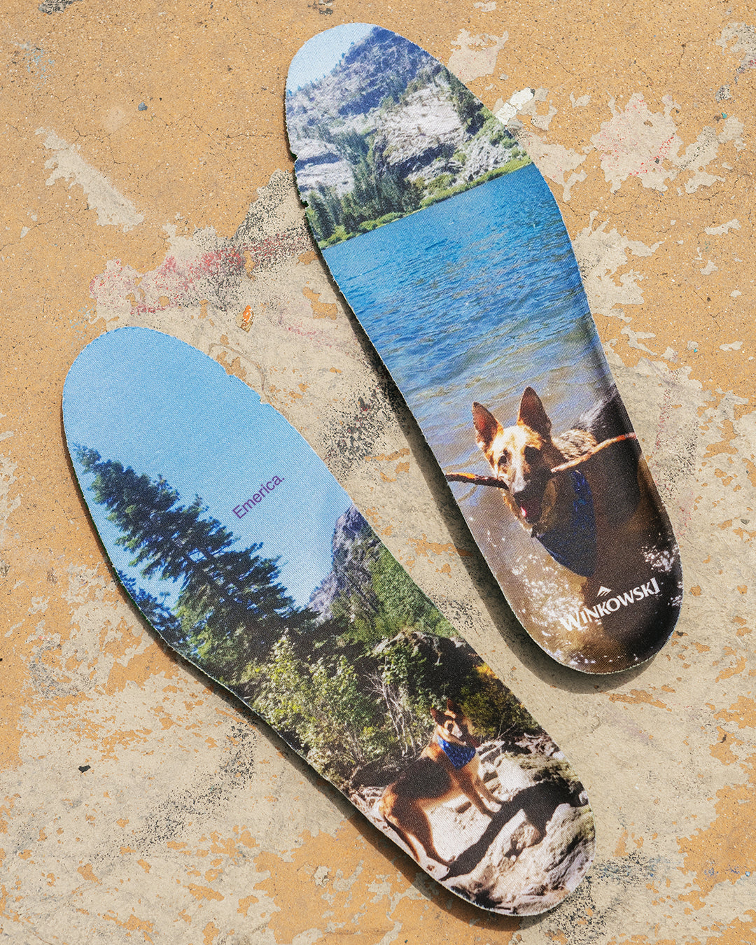 ERICK WINKOWSKI’S SKATING IS A SIGHT TO BEHOLD. AN EXPLOSIVE TWIST TO THE TRICKS OF YESTERYEAR WITH A STYLE ALL HIS OWN. WHEN DESIGNING HIS FIRST SIGNATURE SHOE, WINKOWSKI TOOK A SIMILAR PATH, ADDING HIS FLAIR TO A CLASSIC HIGH-TOP SILHOUETTE. THE WINKOWSKI FEATURES A DECONSTRUCTED COLLAR FOR ANKLE SUPPORT THAT ISN’T TOO STIFF. EXTERNAL TONGUE STASH POCKET AND TONGUE CENTERING STRAPS ENSURE YOUR FOOT AND YOUR GOODS REMAIN SECURE. A RUBBER TOE CAP AND DOUBLE-WRAPPED VULCANIZED SOLE PROVIDE EXCELLENT DURABILITY. G6 POLYURETHANE INSOLES ADD COMFORT AND SUPERIOR IMPACT CUSHIONING. WORKWEAR-INSPIRED CUSTOM RIVETS AND A CUSTOM EMBROIDERED UPSIDE-DOWN TRIANGLE LOGO PROVIDE THE FINISHING TOUCHES TO THIS MODERN CLASSIC. THE WHITE COLORWAY FEATURES PHOTO’S OF ERICK’S DOG, GEORGIA, ON THE INSOLES AS WELL AS HER NAME WRITTEN IN ERICK’S HANDWRITING EMBROIDERED ON THE COLLAR LINING.