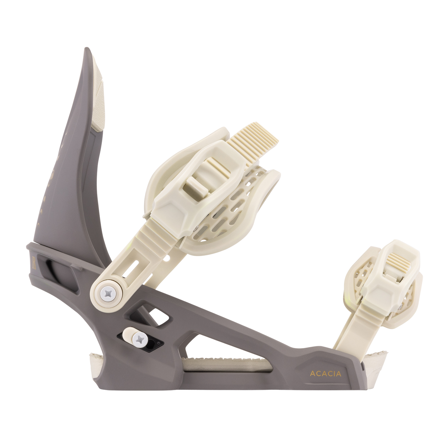 Designed with value and individual progression in mind, the Acacia is intended for beginner to intermediate riders who want to shred the whole mountain. The ideal binding to grow with, it offers a lightweight, single-mold baseplate and heel cup for a unified flex, EVA footbed, and ergonomically pre-curved ankle Bow Straps that keep your foot tray clear upon entry.