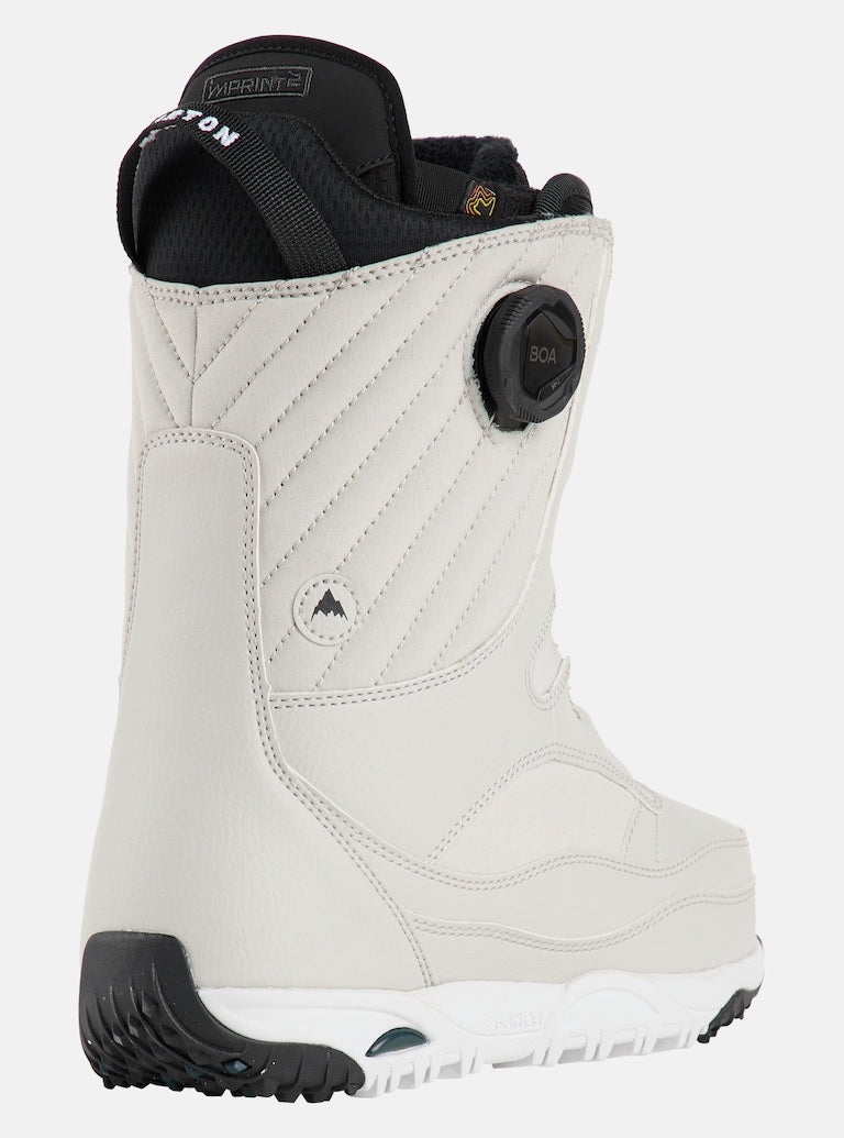 Warm, micro-adjustable, and the simplicity of strapless step on binding compatibility, the women's Burton Felix Step On® Snowboard Boots are about performance inside and out. A Dual Zone BOA® Fit System puts effortless adjustment of lower and upper zones at your fingertips with the turn of a dial. Step On compatibility makes every transition quick and easy with uncompromised board control. And warm feet are the norm thanks to heat-reflective tech in the boot plus the benefit of foot-hugging, heat-moldable liners.
