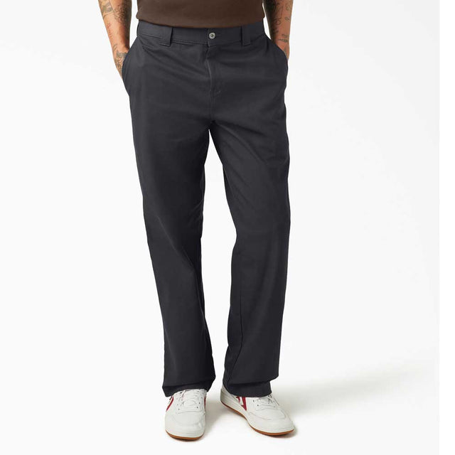 Cultivate your signature skate style in Dickies Skateboarding Slim Straight Pants. These brushed twill pants team with Dickies® FLEX fabrication to engineer maximum mobility when you ride. The interior features a soft herringbone pocket bags for added comfort as well as Dickies Skateboarding signature red detailing for one of a kind styling. A durable metal front button closure will hold up no matter hard you bail, giving you extra wear and tear that won’t give out over time.
