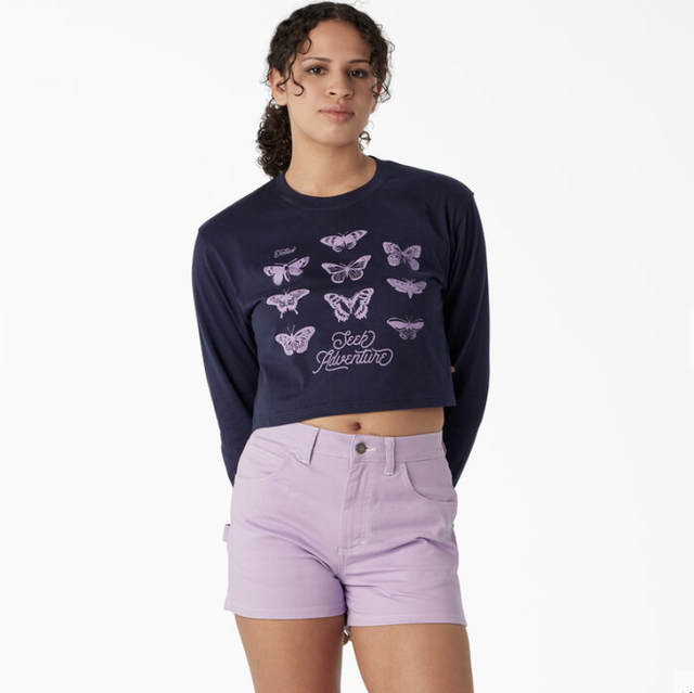 Dickies Women's Butterfly Graphic Long Sleeve Cropped Tee - Navy - Medium / Navy is backordered and will ship as soon as it is back in stock.