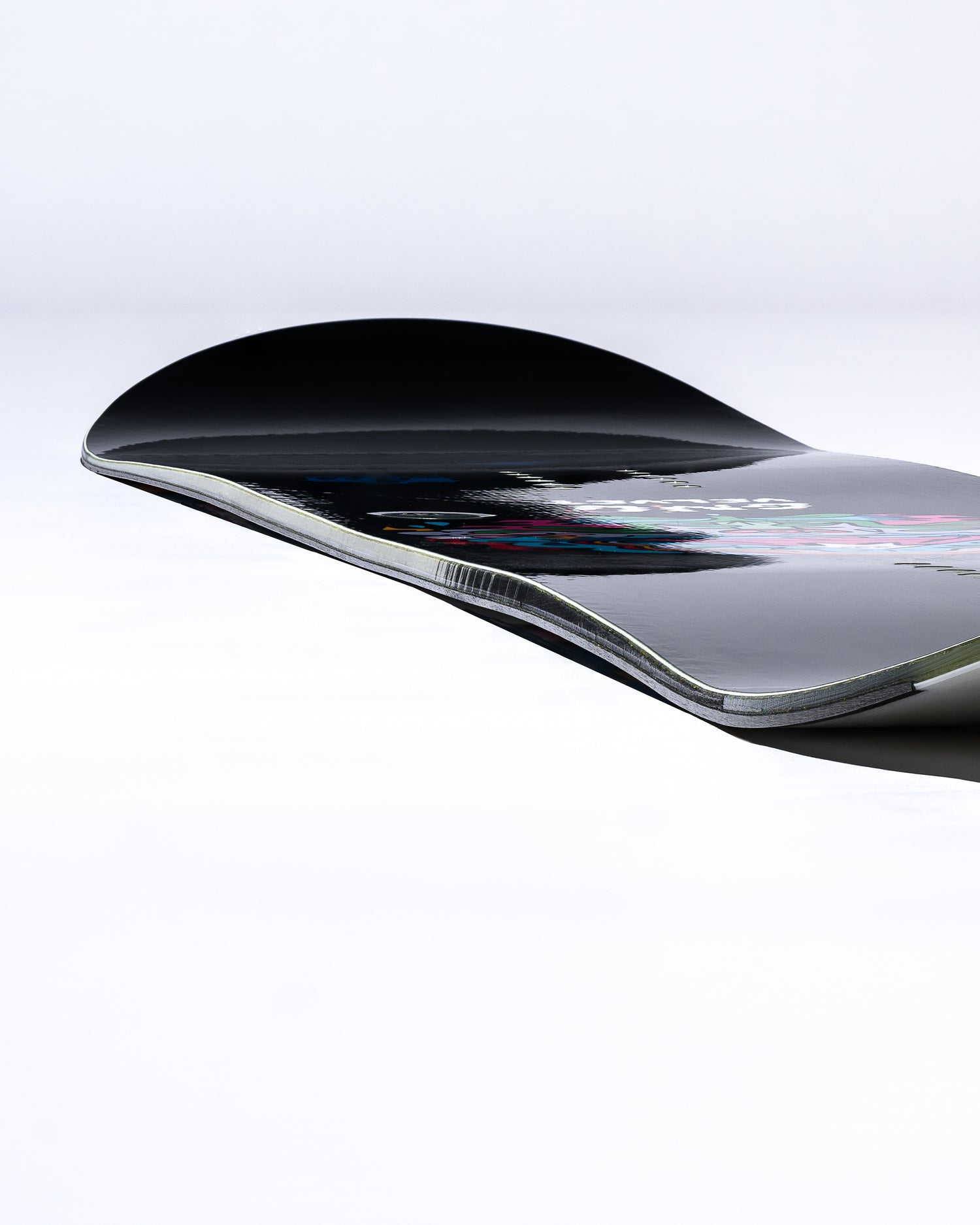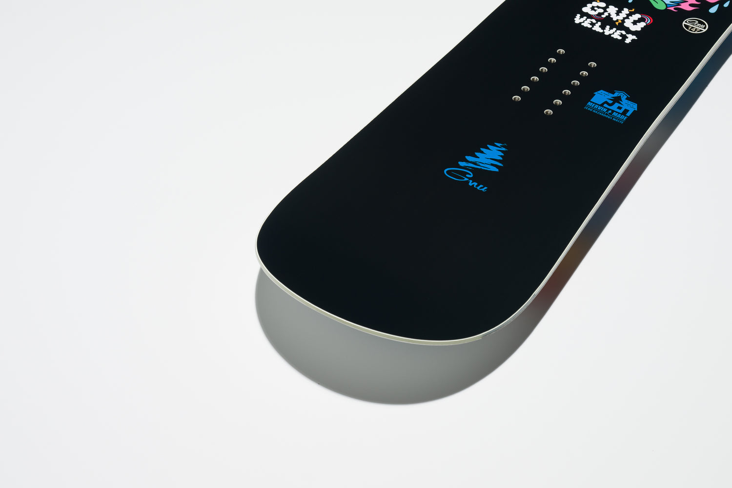 The Velvet is the choice of Gnu team riders who approach the whole mountain like their park. It’s snappy flex and hybrid C2 contour work in synergy for pop and stability. It features intuitive geometry, and Magne-Traction®, so it is catch-free and responsive. The eco sublimated plant-based graphics give this ride a down to earth vibe. The Velvet is comfortable in any conditions and as balanced in the park as it is in banked slaloms or street sessions. Design conceptualized by Naima Antolin and art by Hannah Eddy.