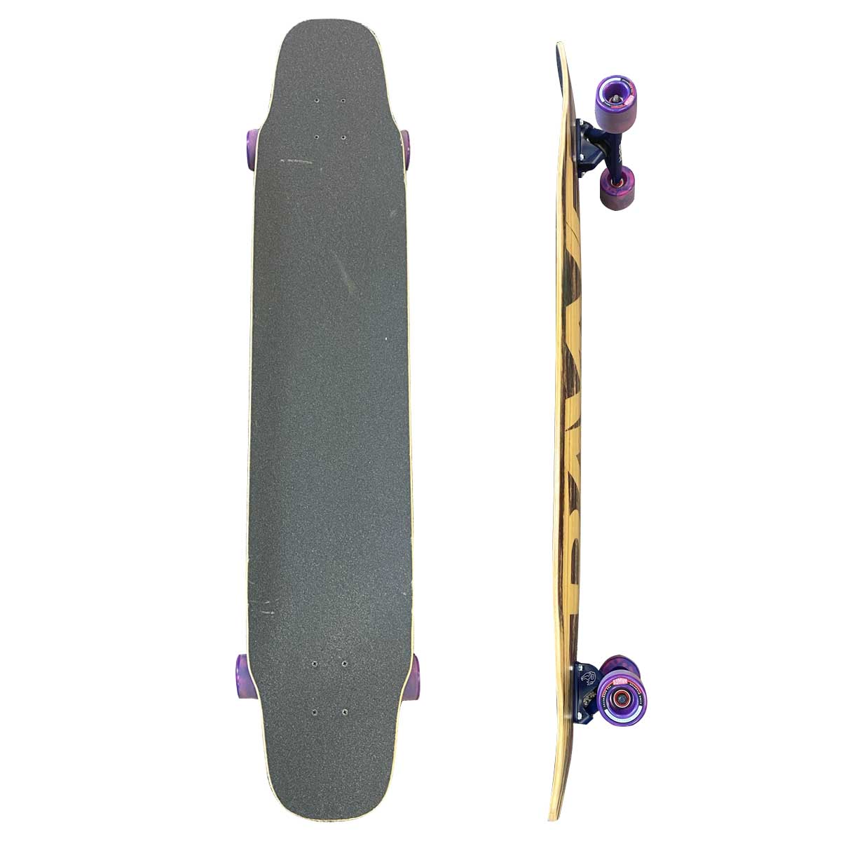 The Whip 47 is the largest deck from the Dancing/Freestyle series of Rayne. It is the perfect longboard for dancing, cruising, and some casual freestyle . It features Fat Bottom construction for general wheel clearance and weight reduction. The board has rocker, tattooed graphics and varying wheelbase.
