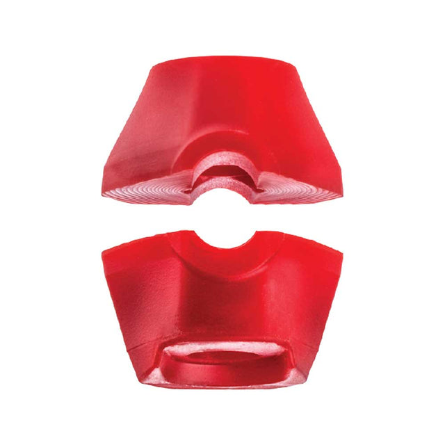 Aeon bushings pair to form a cylindrical hollow that locks around barrel-shaped hanger elements – a true bearing with no added parts. This patented design forces the hanger to rotate inside the tubular channel in perfect alignment with the pivot axis. Eliminates slop, aligns and stabilizes geometry without the downsides of support pins, spherical bearing inserts, or hanger plugs. Quick response from center and noticeably smoother, cleaner turns – even at deep lean angles that destabilize the steering of ordinary RKP trucks.