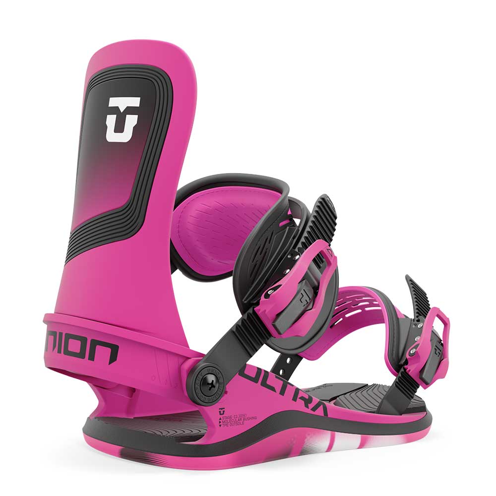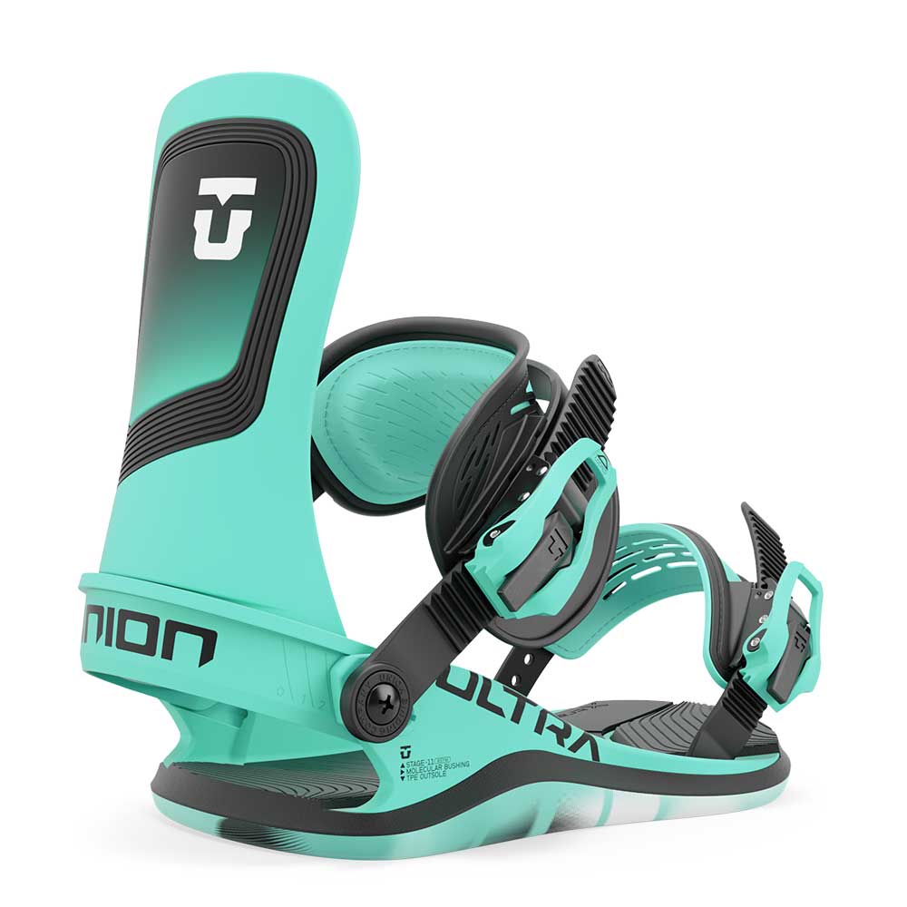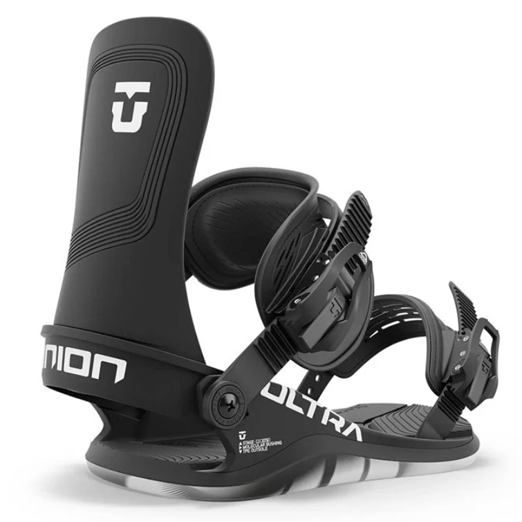 Strap into the most comfortable snowboard binding ever developed. The Union Ultra provides a flexible and cushioned ride feel like you've never experienced before. Each component of the Ultra acts as a suspension system for your snowboard boots, loading and unloading with each movement as you ride. Welcome to the future of snowboard binding design.