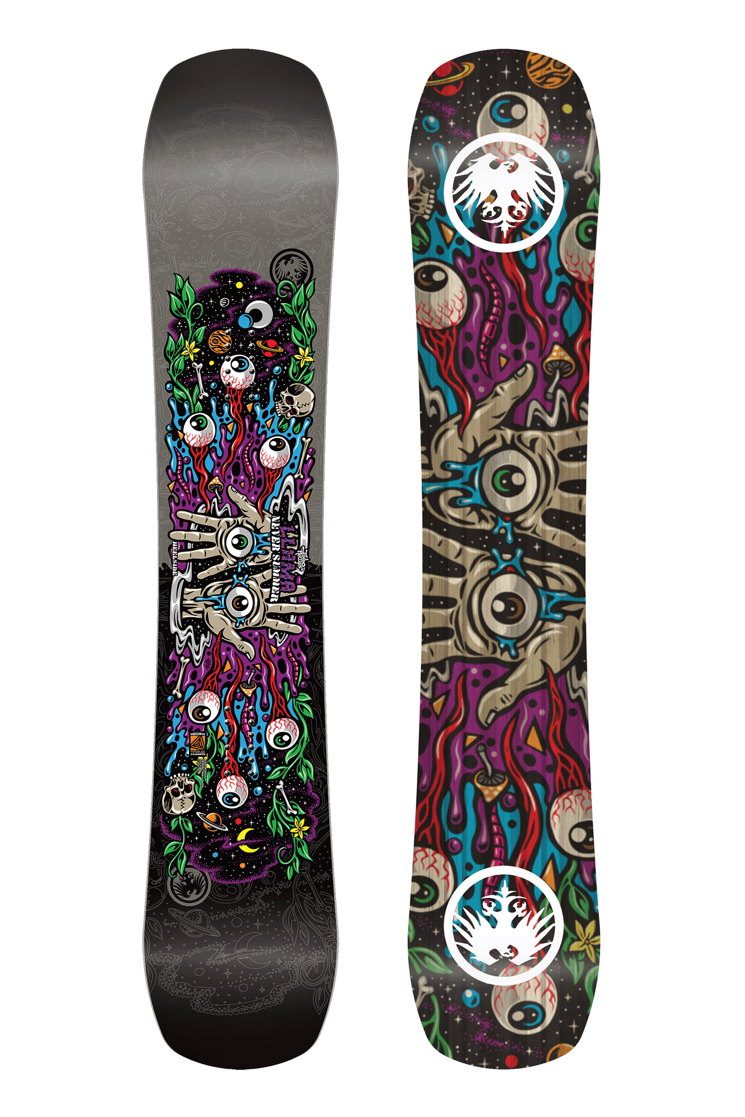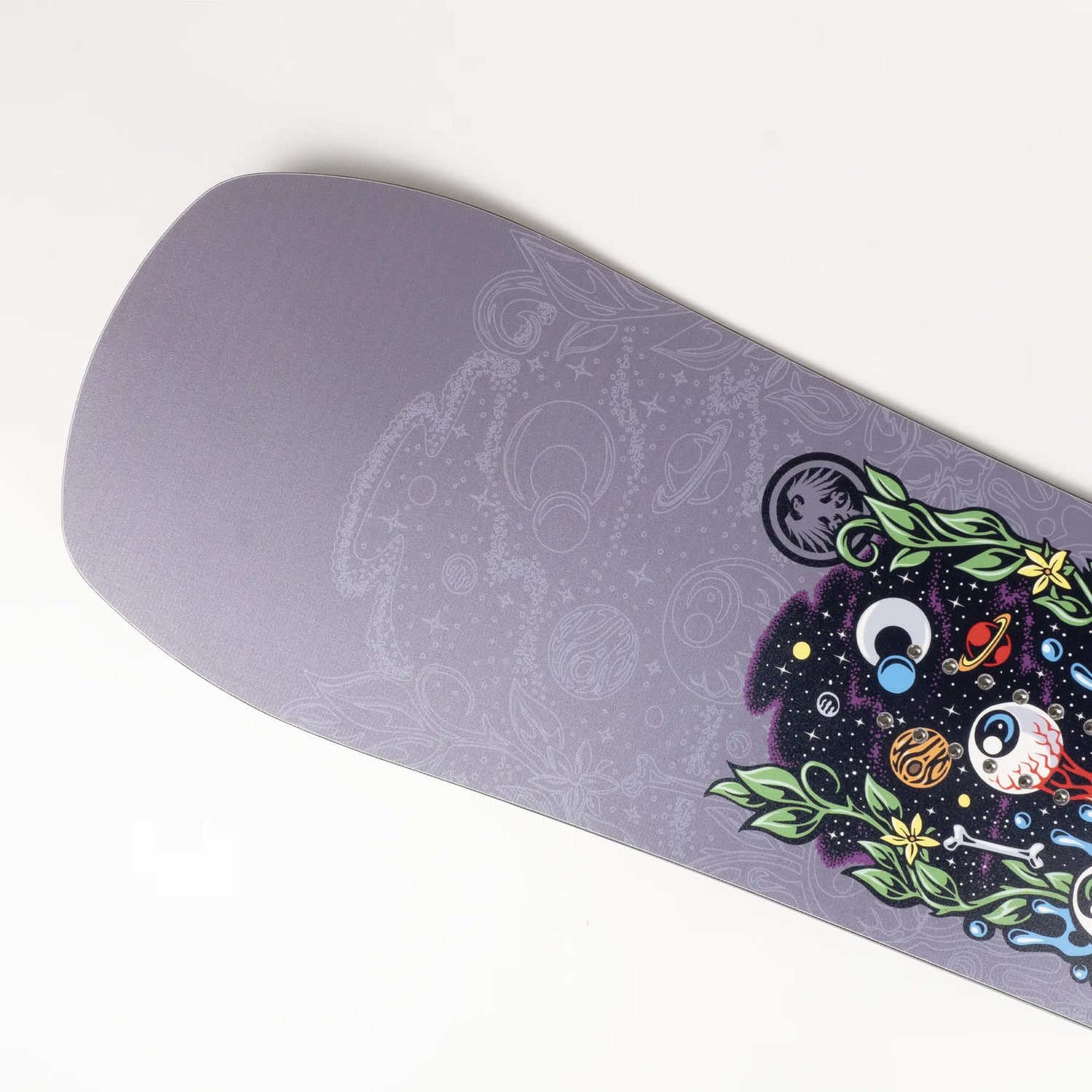Named after one of Never Summer’s original team riders, Eric “The Llama” Segris, and featuring artwork by the legendary Jimbo Phillips, this softer-than-midflex asymmetrical twin is built for the ultimate freestyle all-mountain rider. Its Recurve Traditional Camber delivers explosive pop and smooth, locked-in carves, making it a standout choice for those who demand style and performance.