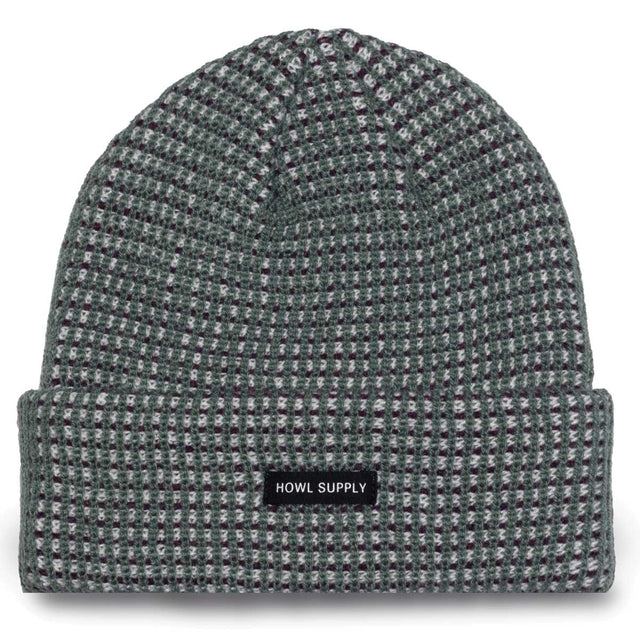 Acrylic cuff beanie in comfortable rib knit, with HOWL woven label.