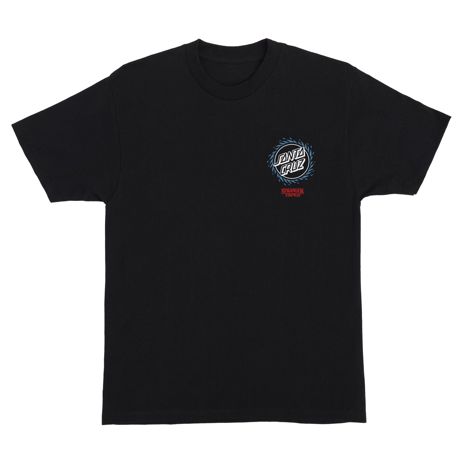 Product Features Small front and large back Santa Cruz x Stranger Things Hellfire Pit artwork Printed with soft hand ink for a premium feel Regular fit.