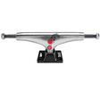 Polished hangers with custom splatter black forged baseplates. Extra-Strong re-inforced hollow axles. Premium Grade Hollow Kingpins, Opaque White 90A Thunder Bushings. Silver Nuts and Washers.