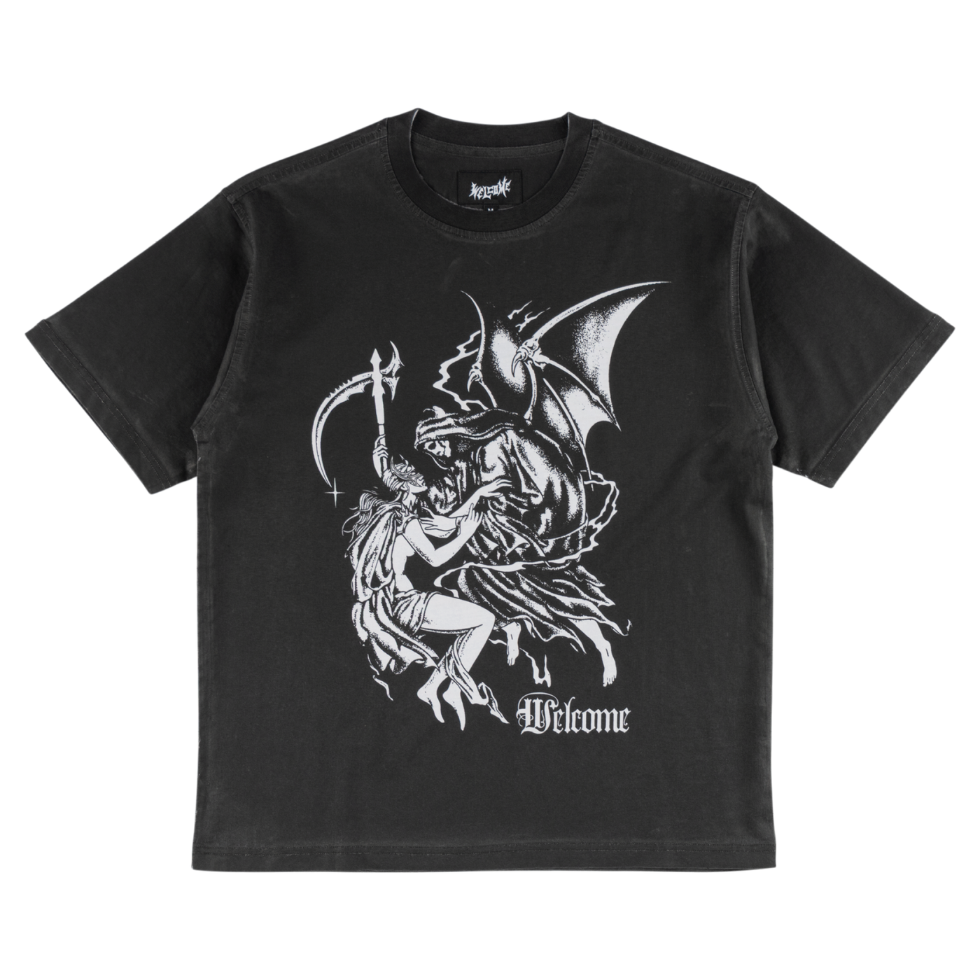 Welcome Archangel Overprint Boxy Garment Dye Short Sleeve T-Shirt - Large / Black is backordered and will ship as soon as it is back in stock.